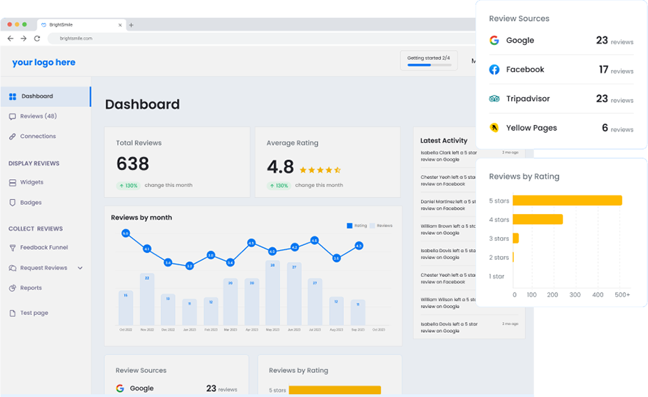 Eleva il marchio della tua agenzia! Personalizza la piattaforma per rispecchiare l’identità del tuo marchio, completa di URL/dominio personalizzato. Questo non solo ti consente di offrire servizi di gestione della reputazione di prim’ordine, ma rafforza anche il tuo marchio senza sforzo.