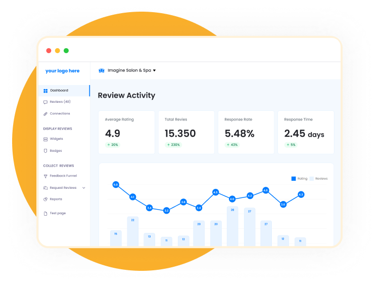 Massimizza i tuoi ricavi e posizionati come l’eroe dei tuoi clienti. La soluzione white label di ReviewsOnMyWebsite ti consente di ampliare i tuoi servizi con un’offerta di gestione della reputazione all-in-one.
